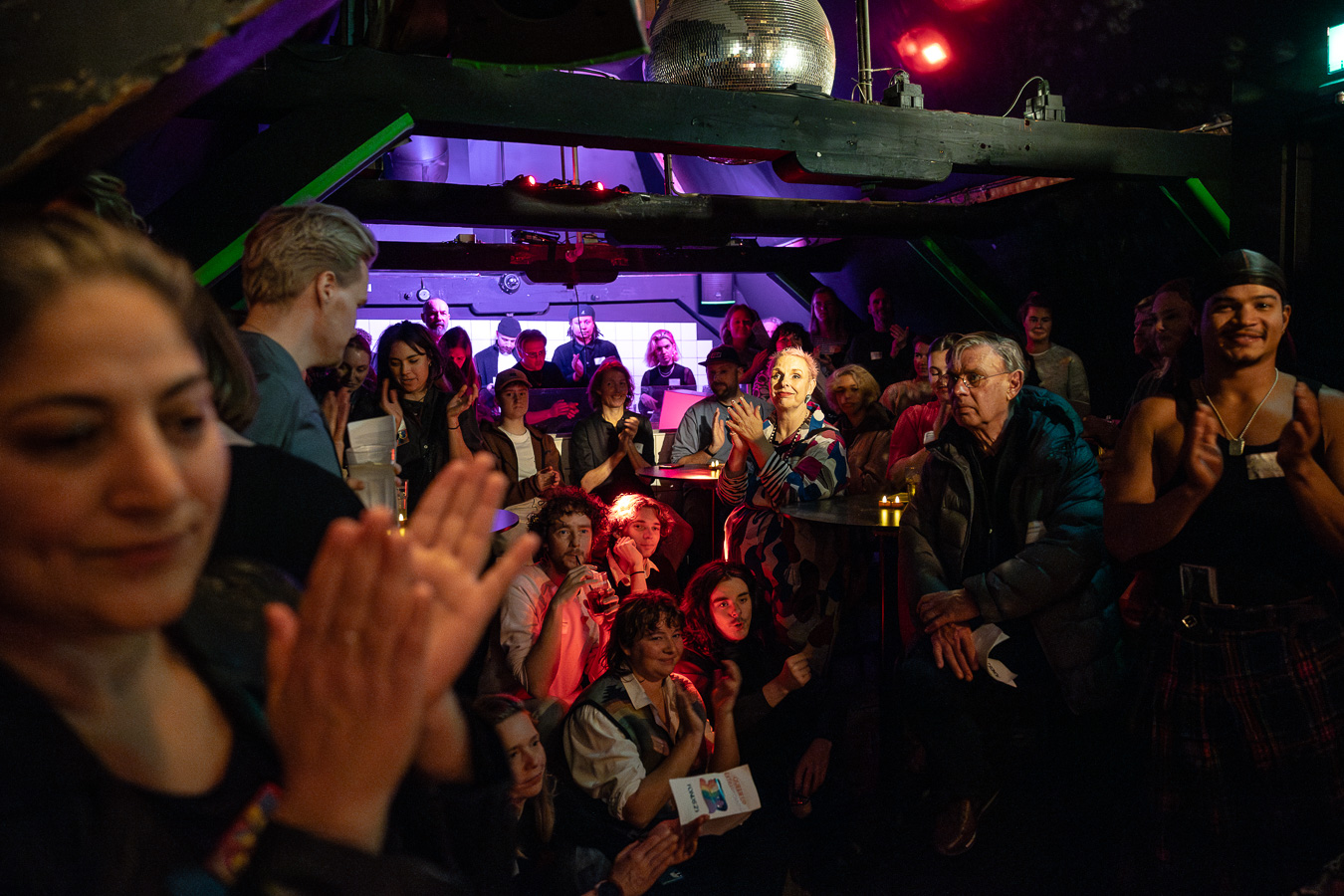 De eerste verdieping van Club NYX vormde het hart van Queer Up EXTRAVAGANZA!, waar talks en performances elkaar afwisselden. DJ-duo Doppelgang zorgde de hele dag door voor een feestelijke sfeer met hun unieke mix van house, acid en ravey disco.