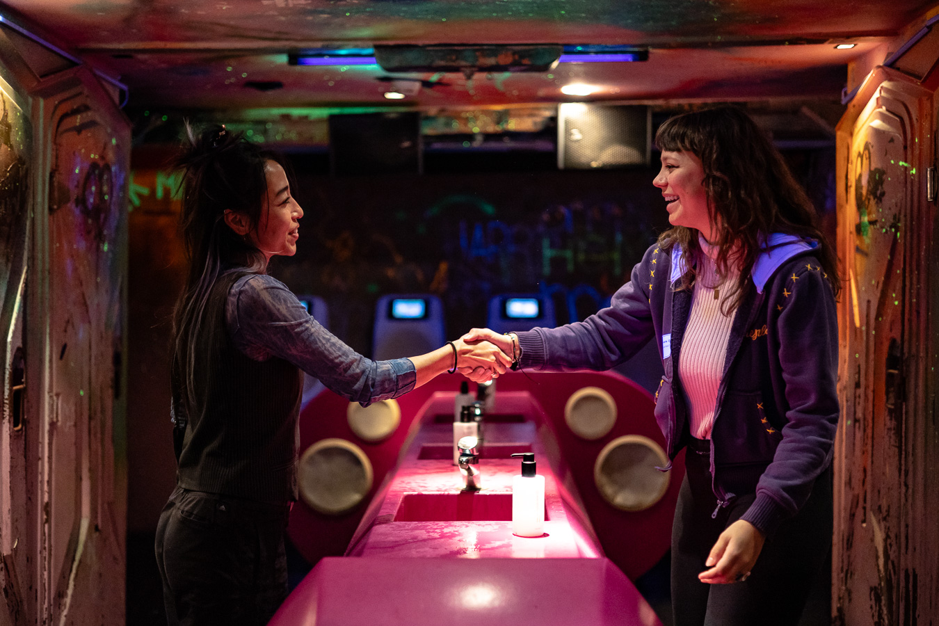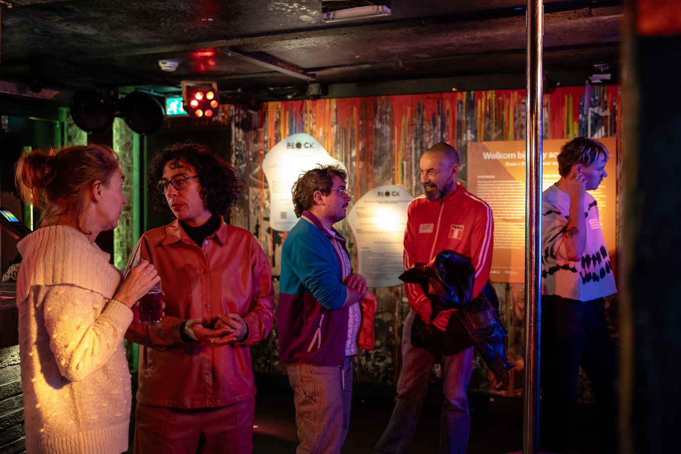 De tweede verdieping van Club Nyx was ingericht als ruimte waar bezoekers elkaar konden ontmoeten rondom enkele thema’s. Maas en Blqck deden dit onder meer met een installatie uit de serie Why So Serious? Maas theater en dans is het grootste theater- en dansgezelschap voor kinderen, jongeren en jongvolwassenen in Nederland, en beschikt over een eigen podium in Rotterdam. Blqck a queer aesthetic is een platform ontwikkeld door Sarah Jawla met en voor de BIPOC queer-community. Blqck heeft als doel veiligere sociale ruimtes te creëren waarin mensen elkaar durven te her ontmoeten. In de serie Why So Serious? bundelen Maas en Blqck hun krachten met de BIPOC en queer-community om programma’s te maken die gericht zijn op het losmaken van oude (westerse) structuren, zoals racisme. De installatie in Club NYX nodigde uit tot gesprek. Het was een plek voor ontmoeting en uitwisseling.